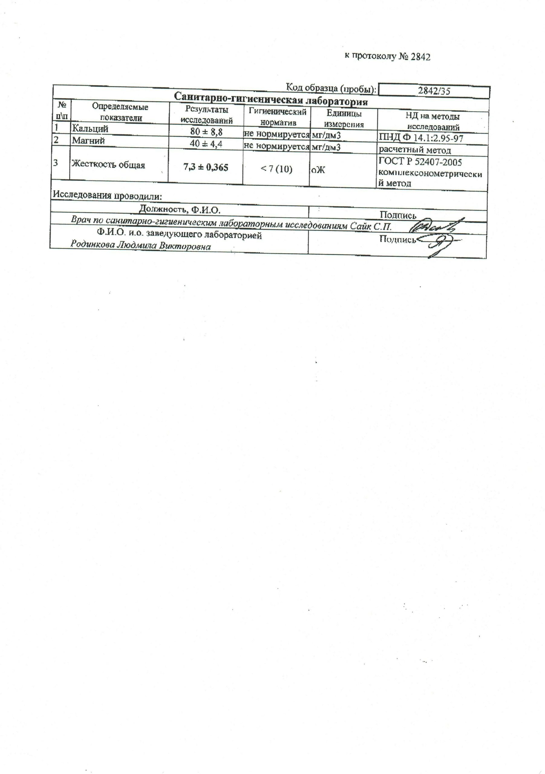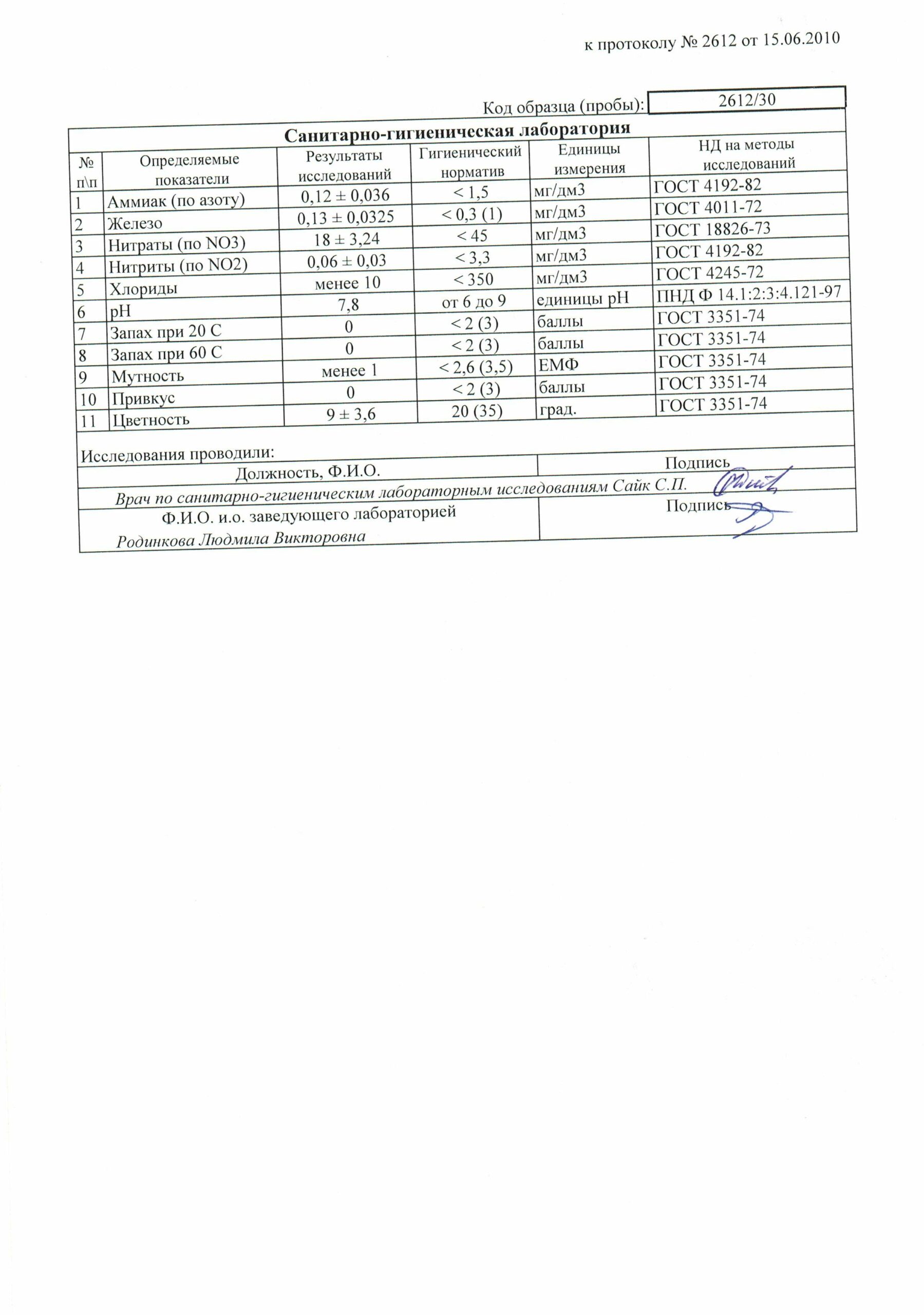 Далее приложен углубленный анализ воды из скважины расположенной рядом (все значение ниже норматива в разы), и анализ жесткости для возможного подбора очистного оборудования.